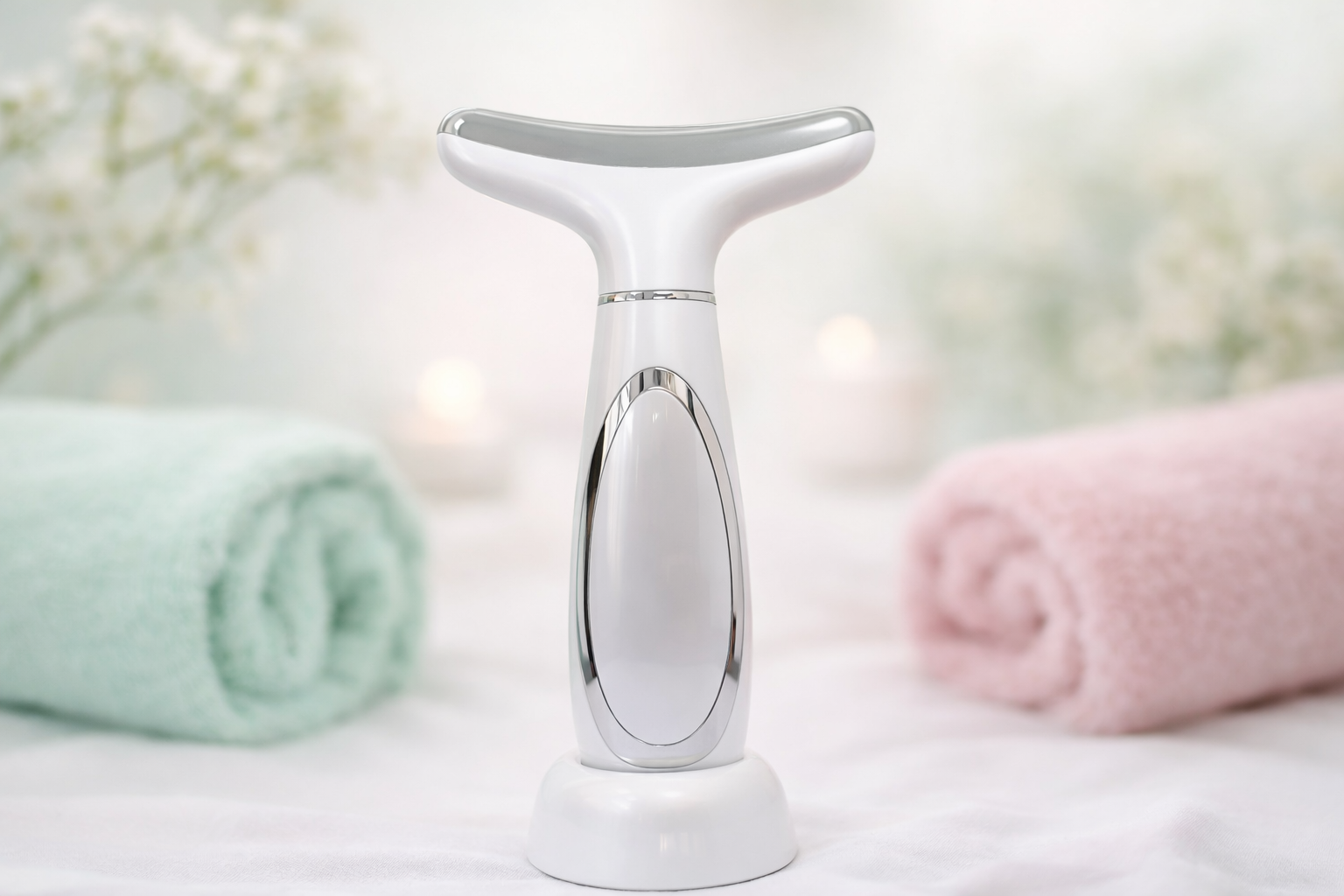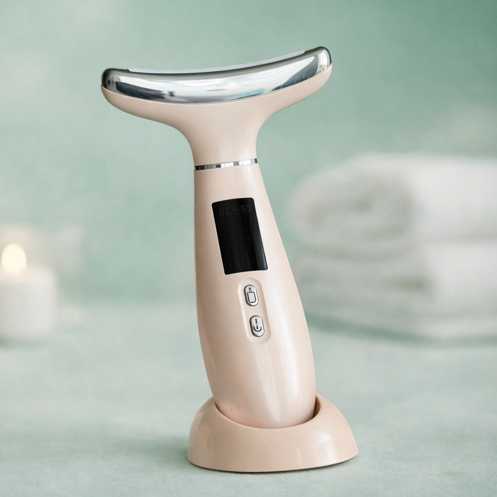 Este elegante masajeador facial en forma de concha transforma tu rutina nocturna en un lujoso ritual de spa. Diseñado para el cuidado multizona, ofrece: